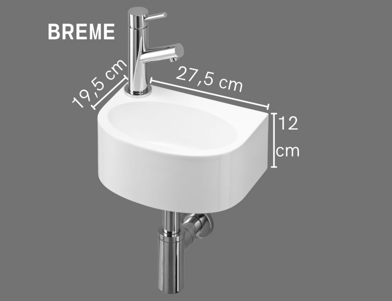 Ultra-compact wall-mounted washbasin 27.5x19.5 cm breme gauche