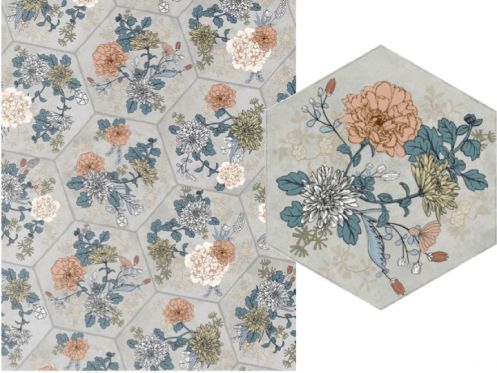 Juliet sela - 21 x 25 cm - floor and wall tiles, hexagonal matte aged finish