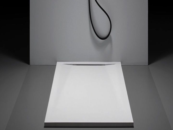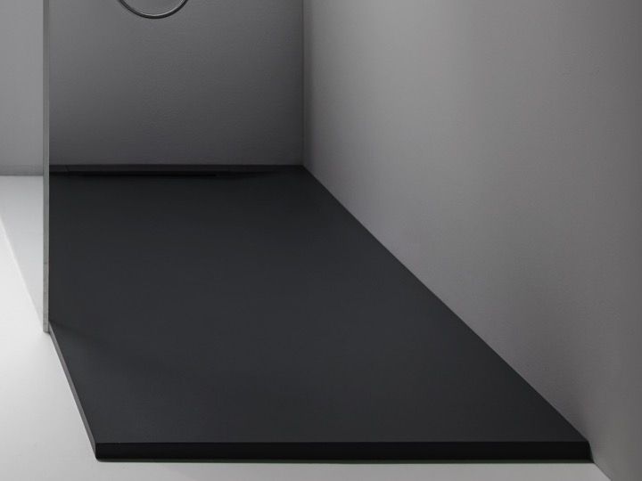 Shower tray, with a designer channel, extra flat, in Akrytan® mineral resin, custom made, slate finish.
