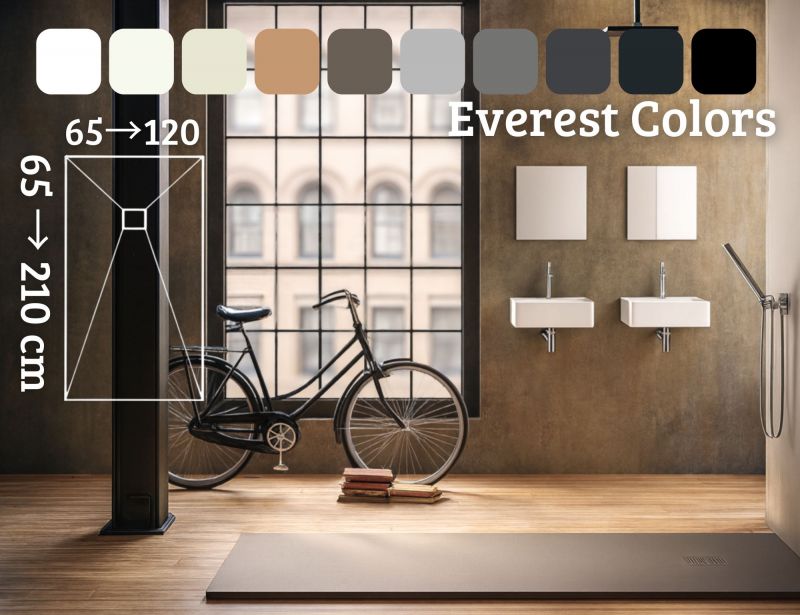 EVEREST shower trays are made of ecological and durable Acrystone® resin. They can be made to measure or re-cuttable.