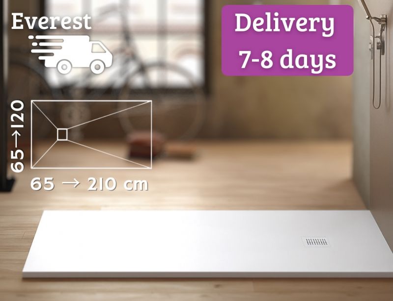 EVEREST shower trays are made of ecological and durable Acrystone® resin. They are available in bespoke or re-cuttable.