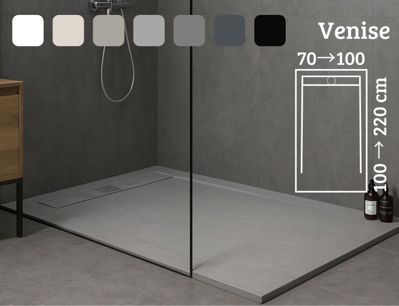 Shower trays, drain, in mineral resin, slate effect, non-slip.