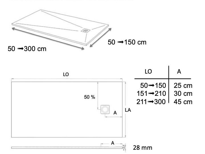 Shower tray 250 cm