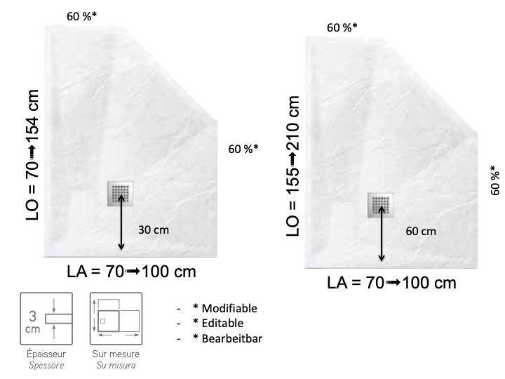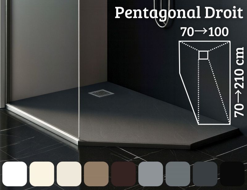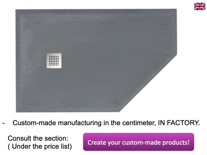 the PENTAGONAL shower tray is not cut, but made to order, with a flat front, for installing a shower screen.
