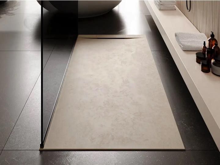 Custom shower tray, design, in mineral resin, stone effect, non-slip.