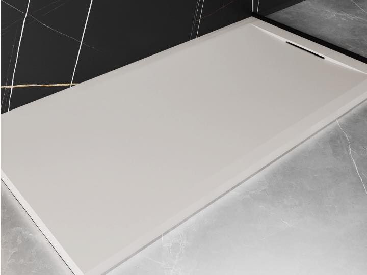 Shower trays that can be cut to size, made from lightened mineral resin, with around 40% of the weight, for faster, more comfortable installation, less effort and easier handling.