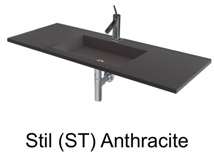 Washstand, 50 x 120 cm, suspended or recessed, in mineral resin - stil 45