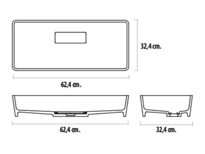 Countertop washbasin, 62 x 32 cm, in solid surface resin - helios
