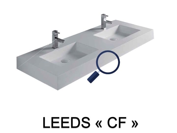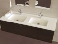 Washbasin, with two integrated basins, suspended or recessed, on bathroom furniture, in Akrytan® mineral resin, smooth matte finish.