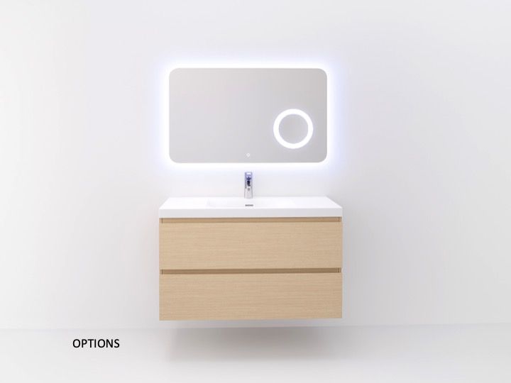 - Furniture delivered assembled, suspended by adjustable anti-detachment hooking boxes. Sanitary space: 70 mm.