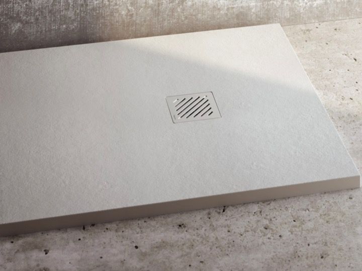 The ECOLINE cut-to-size shower tray is durable and lightweight, made of mass-coloured mineral resin.